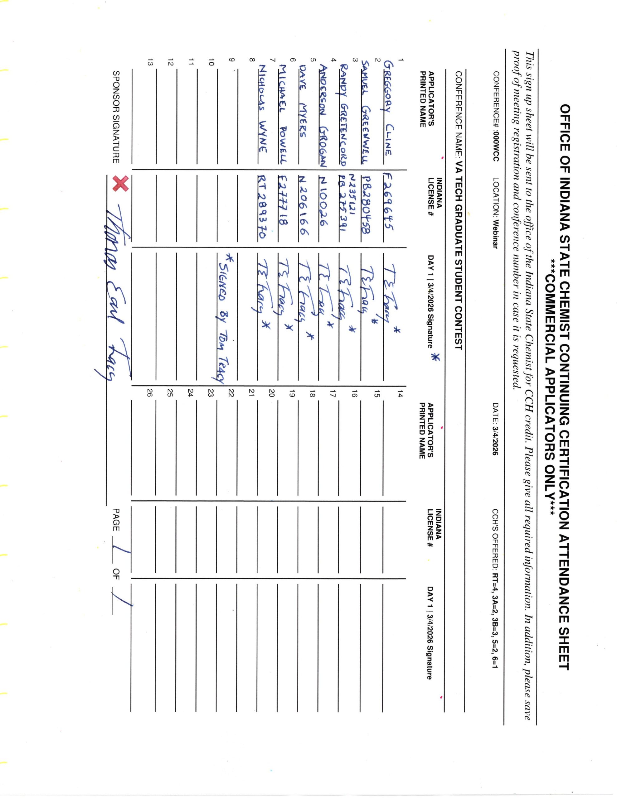 March 04 and March 05 attendees were combined into one form we sent to Georgia Dept of Agriculture: Download list