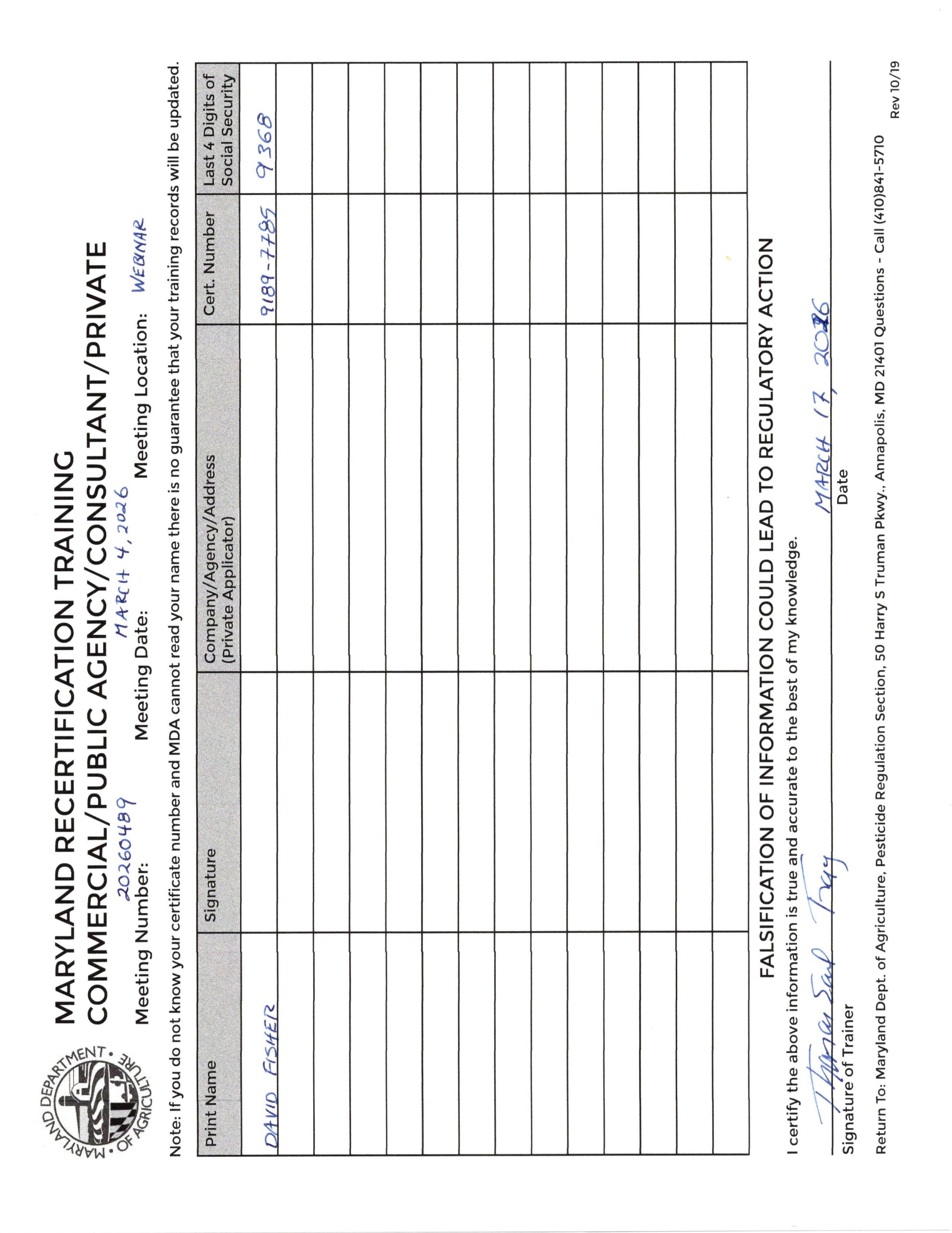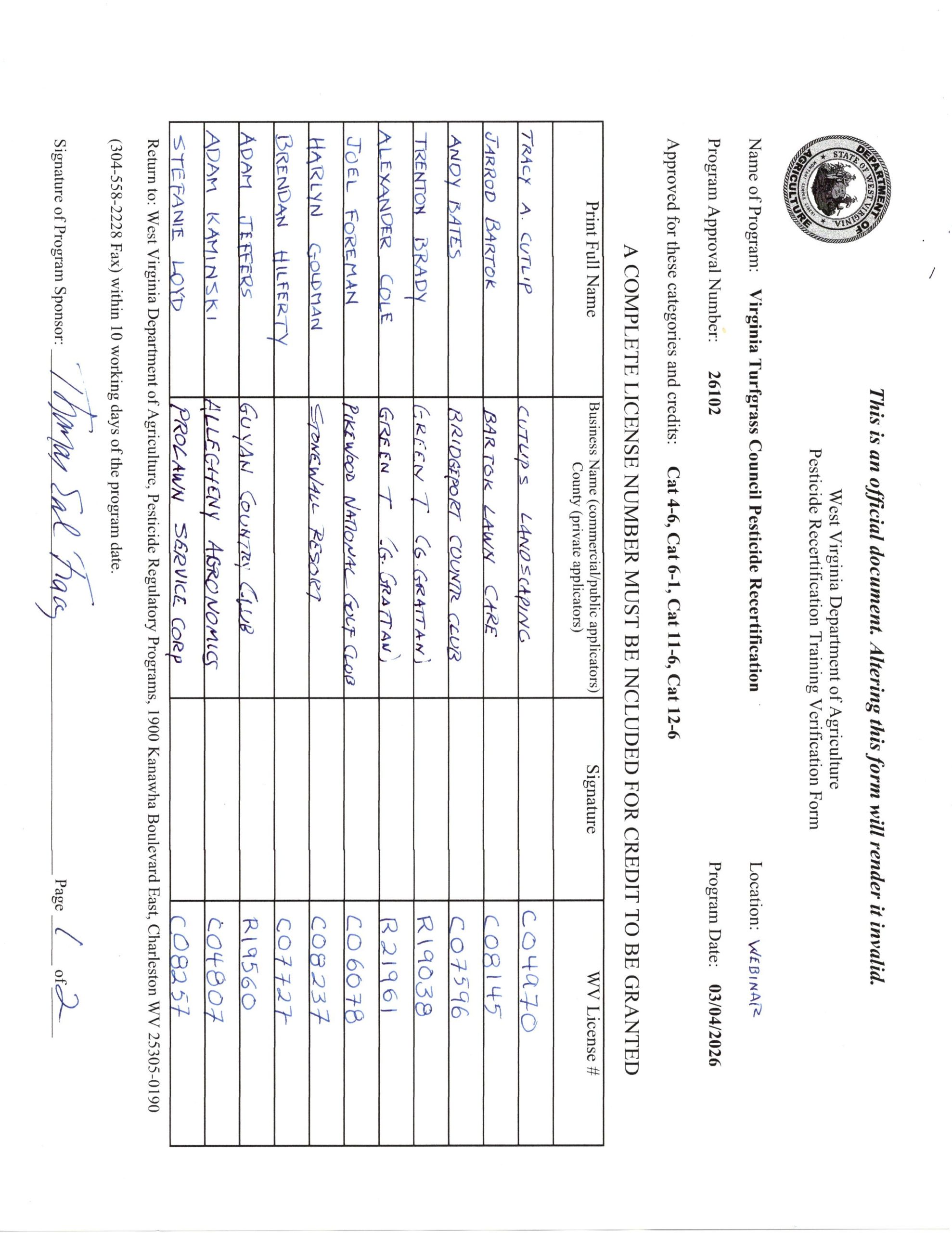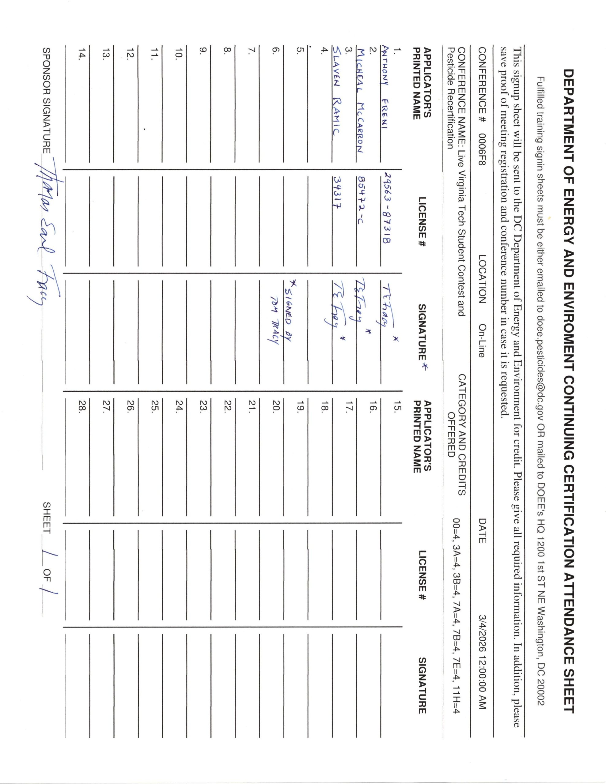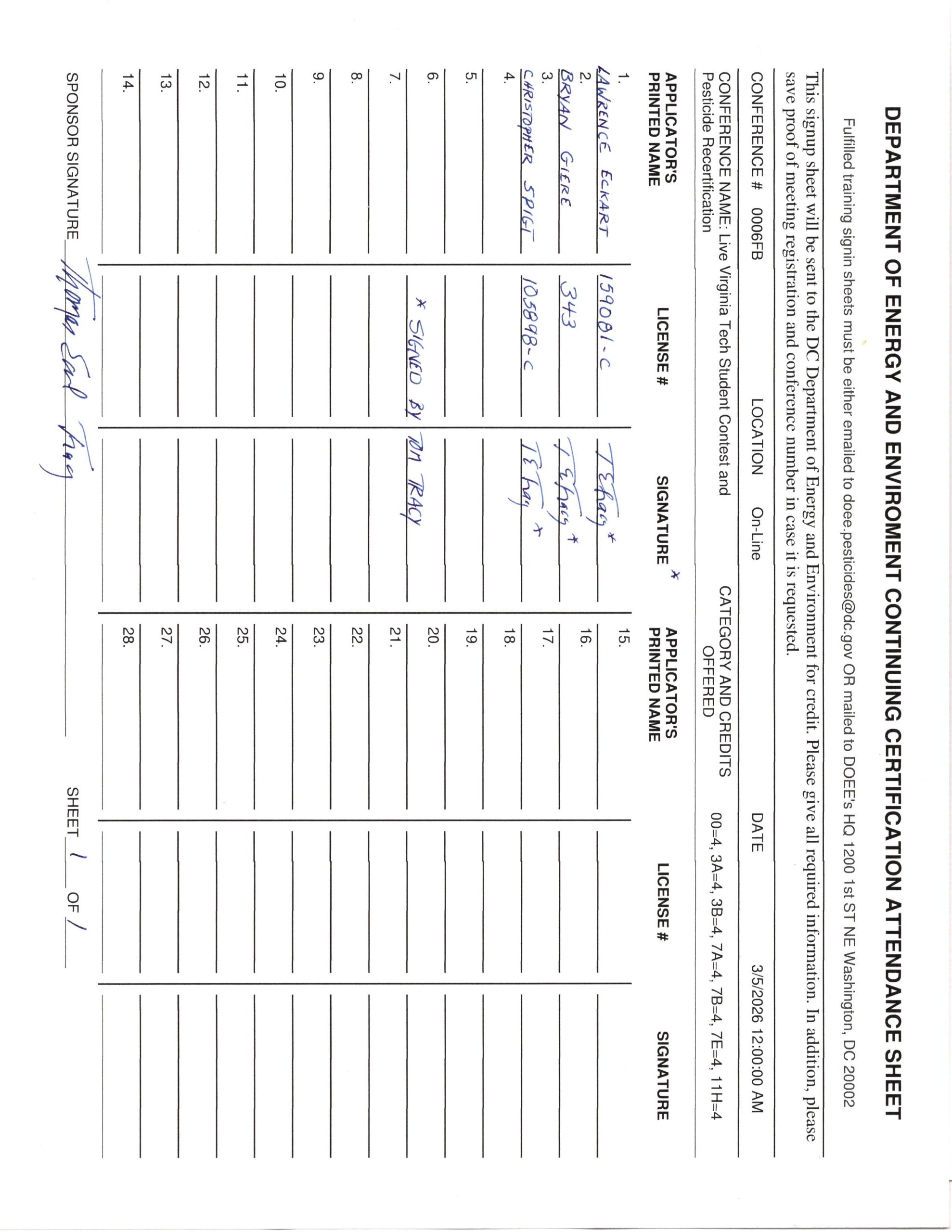Your Next Step: Attendees can download the copies for their own records – do not send them to VDACS because we do that for you. VDACS will post updates to the master list of pesticide applicators and the status of their certifications after they process the over 600 forms we mail to them. You can go online to check your status: